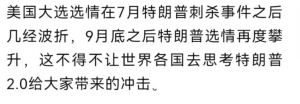 刚看到7月特朗普遇刺的的那一刻都觉得有点恍惚,因为在我的记忆中,特朗普遇刺好像就是在九月甚至10月份才刚刚发生的事情。
